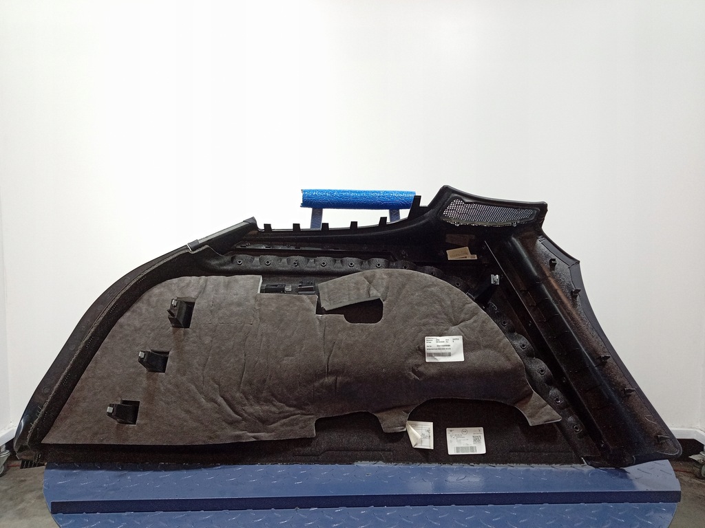 Descrição: um fecho danificado, estofos em veludo com acabamentos em pele azul marinho, sinais visíveis de uso, -qualidade B && BENTLEY BENTAYGA 36A TRUNK ESTOFAMENTO TRASEIRO DIREITO