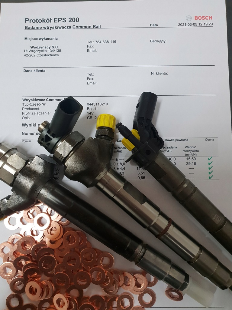 O protocolo de verificação do injetor juntamente com uma garantia por escrito é anexado ao recibo ou f-vat no momento do envio