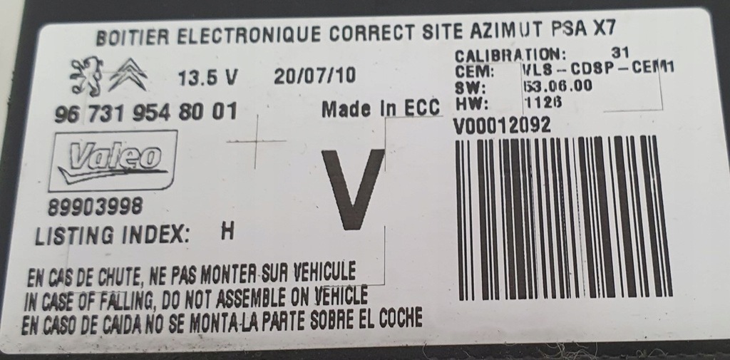 | Número da peça | 9673195480 |