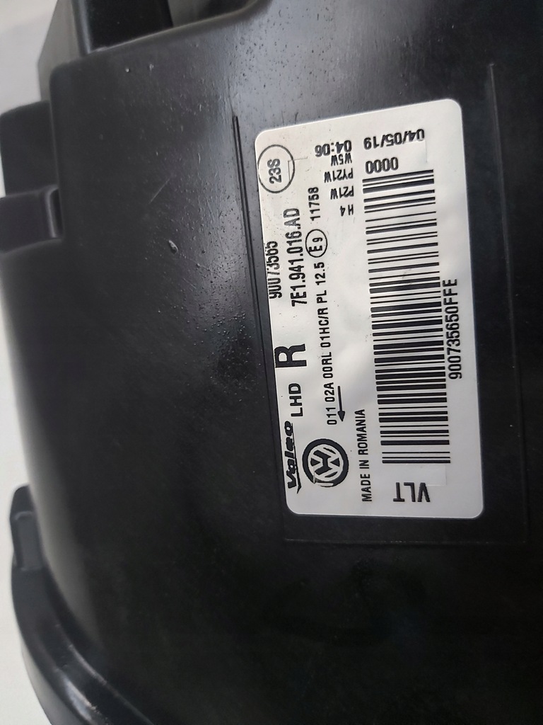 VW T6 7E1941016AD LÂMPADA DIANTEIRA DIREITA ORIGINAL. LIGEIRAMENTE DANIFICADA EM LOCAL VISÍVEL.