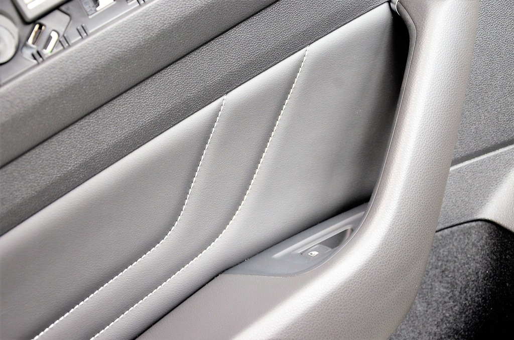 Estofamento original da porta traseira, couro preto com fio branco