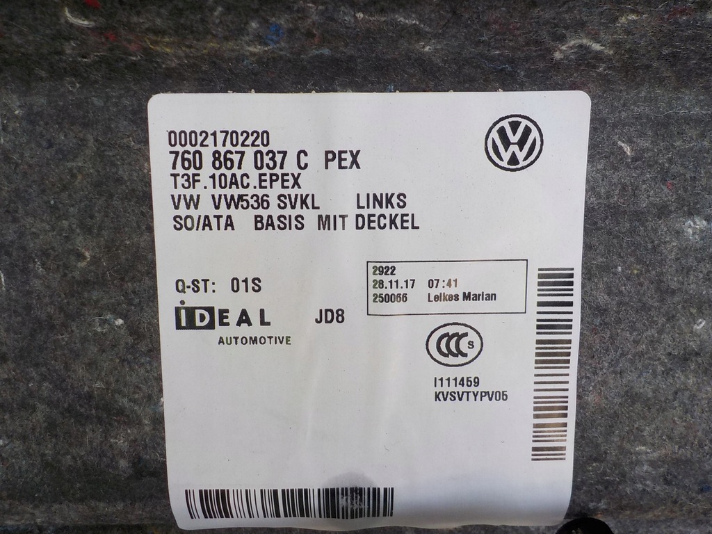 Tampa da bagageira Volkswagen OE 760867037C